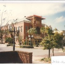 Photograph of The Nassau County Courthouse during renovation of the clock tower